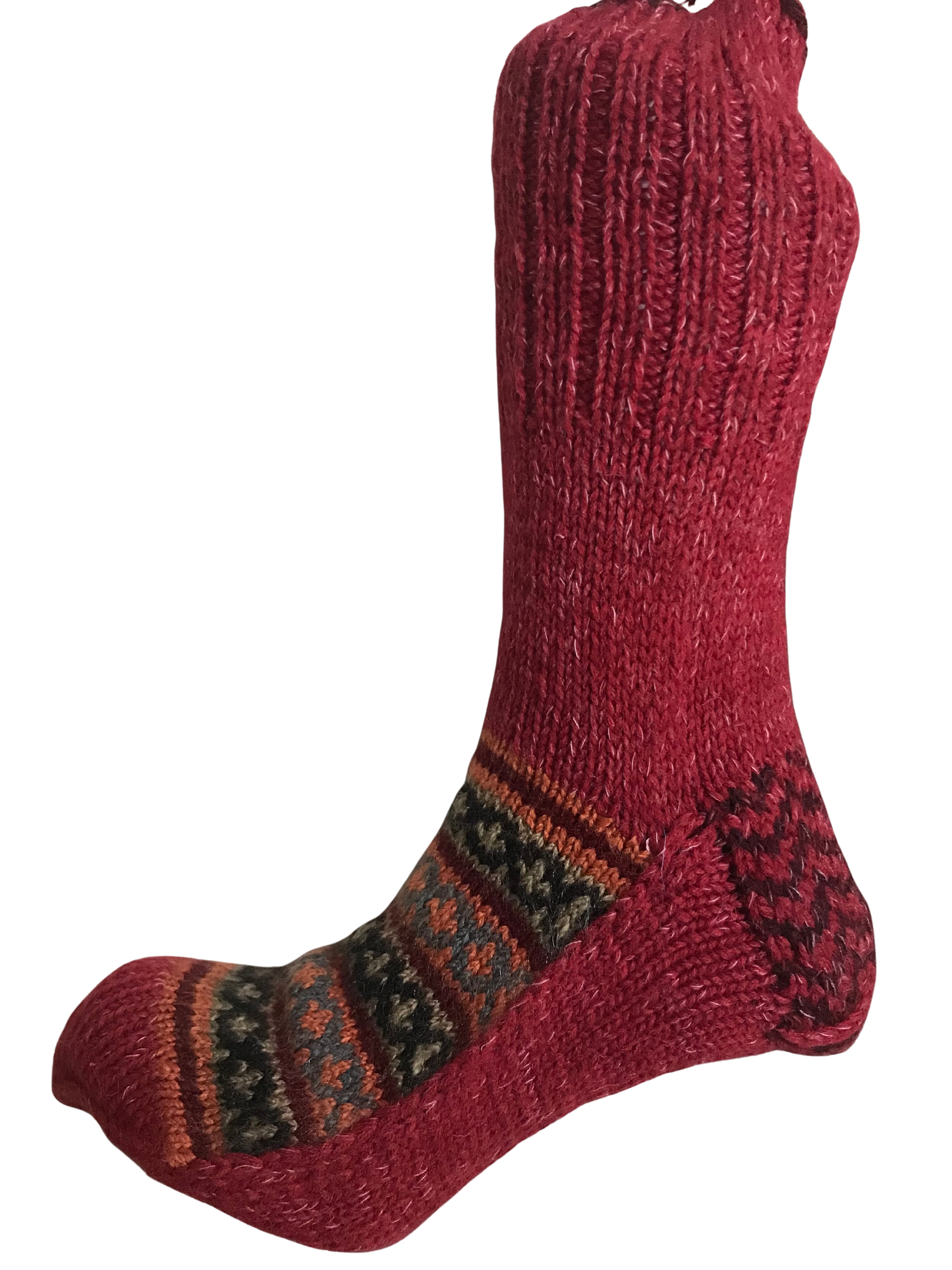 Red Colour Wool Socks - Pattern 2 - Crew Socks