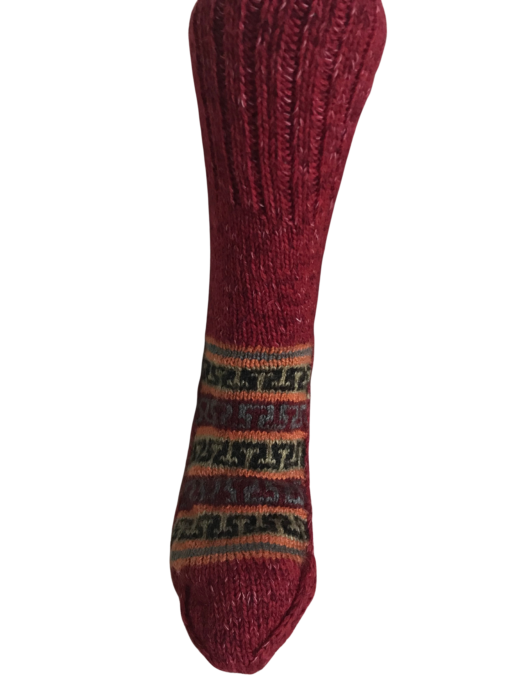 Red Colour Wool Socks - Pattern 7 - Crew Socks